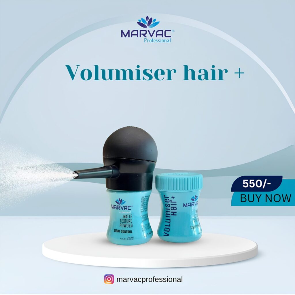 VOLUMISER HAIR The Marvac Professional Volumiser Hair + is a new and improved way to add volume and body to your hair . This device is designed to help you achieve the desired look in a fraction of the time. Simply attach the hair volumiser to your hair and turn it on . The Marvac